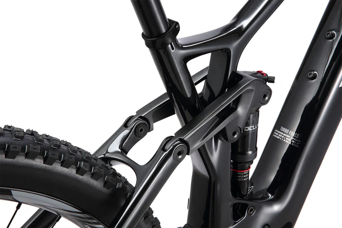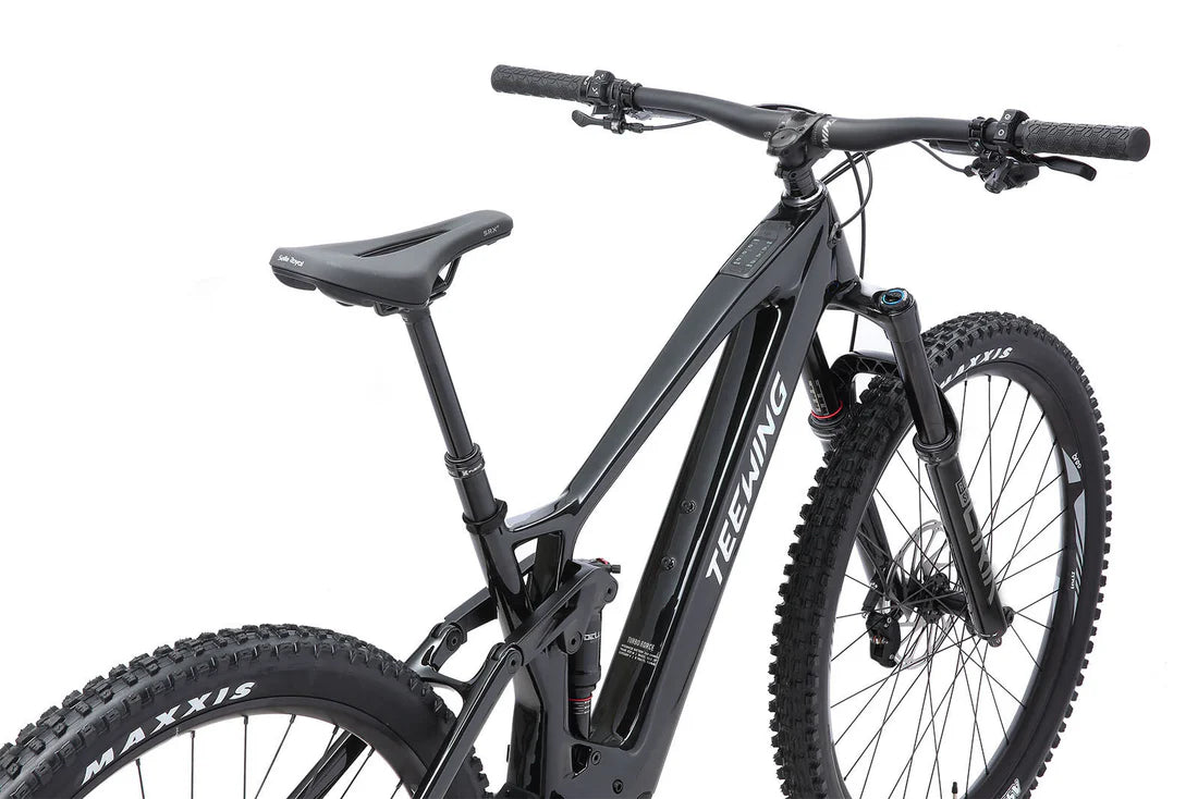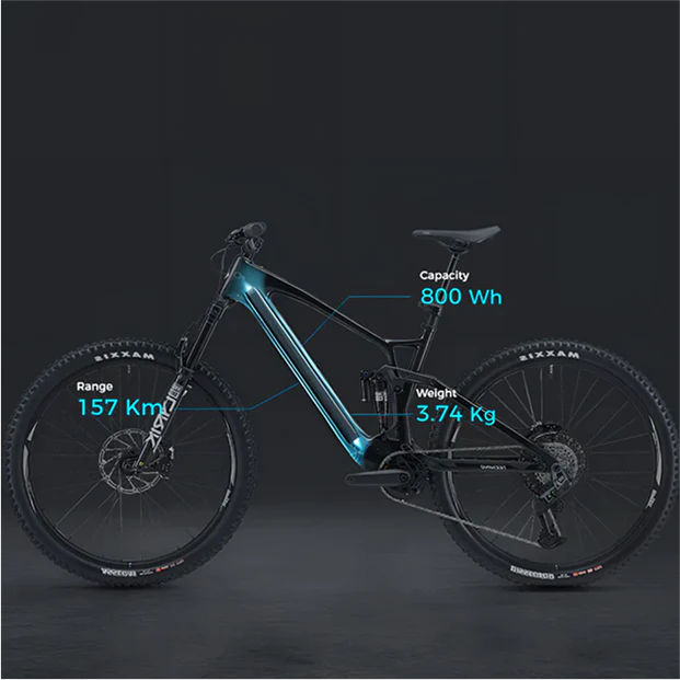Carbon Frame – enhanced stiffness but still weighing only 2.37kg, the frame and its geometry provide nimble ride whether climbing or descending. Total bike weight is under 50lbs (22.7kg) with an 800Wh high-capacity battery!